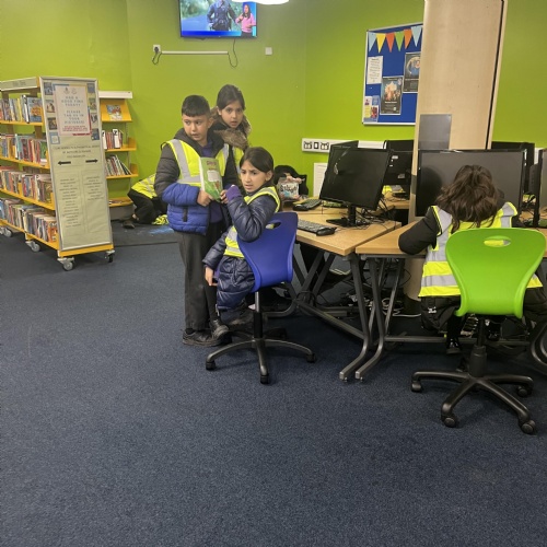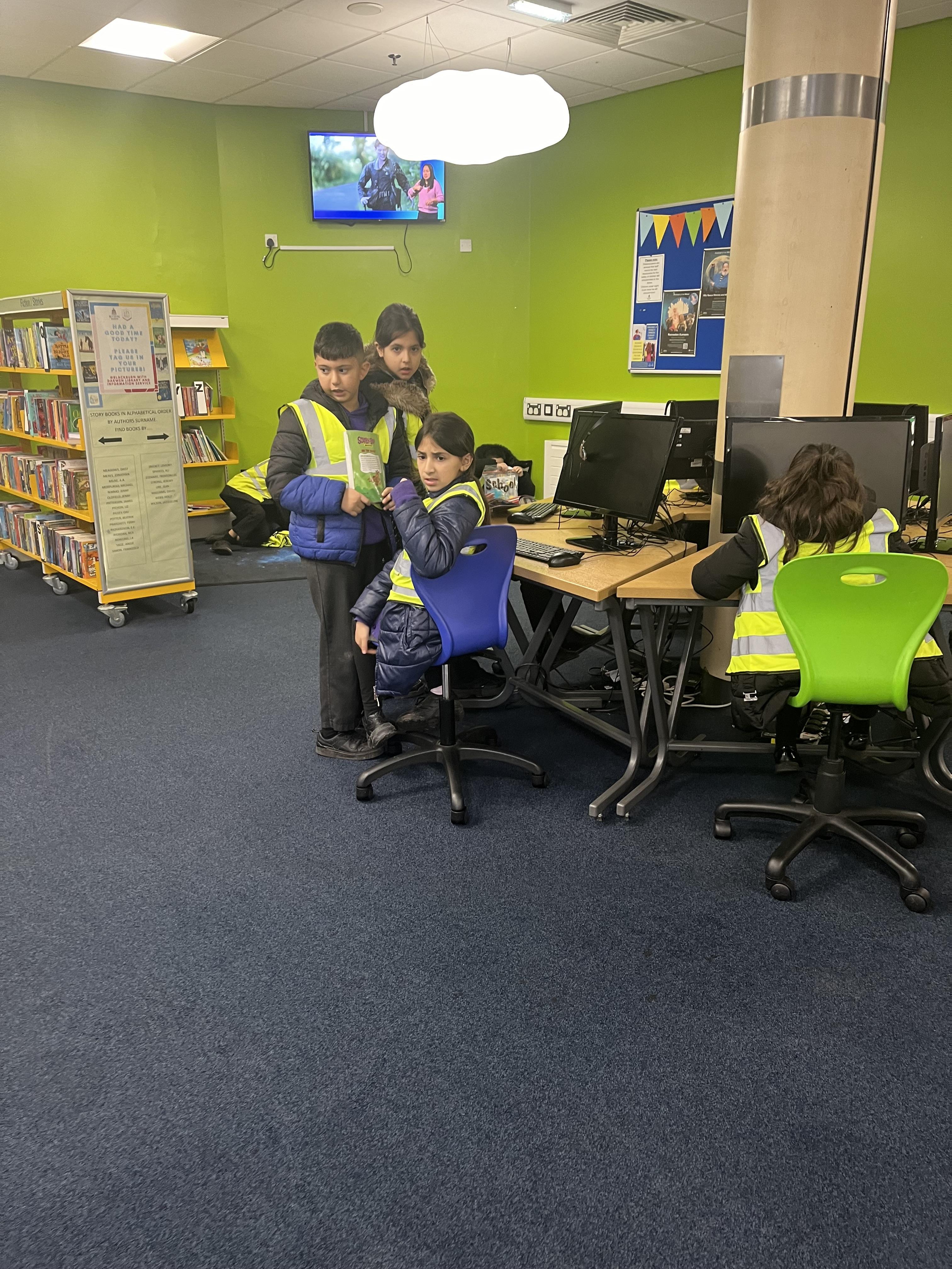 Year 5 spent the afternoon at Blackburn Library, they were told how to use the online services to access encyclopaedias and online books. They discussed their favourite authors and to tie in with Micheal Rosen day some children found books written by Micheal Rosen. Children listened attentively to how the library uses the 'dewey' system to arrange non-fiction books. The children spent tile browsing and reading books, some used their library cards to self-scan and take plenty of reading material home!