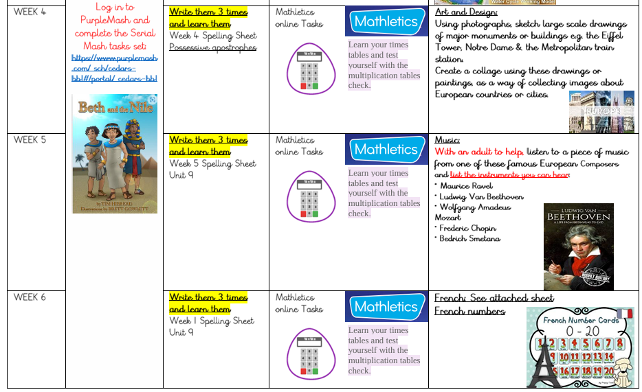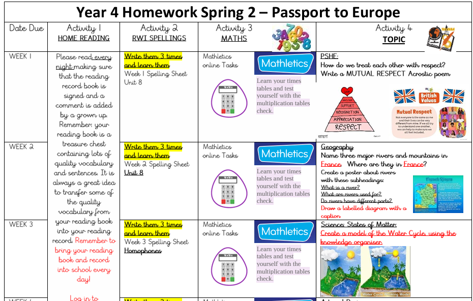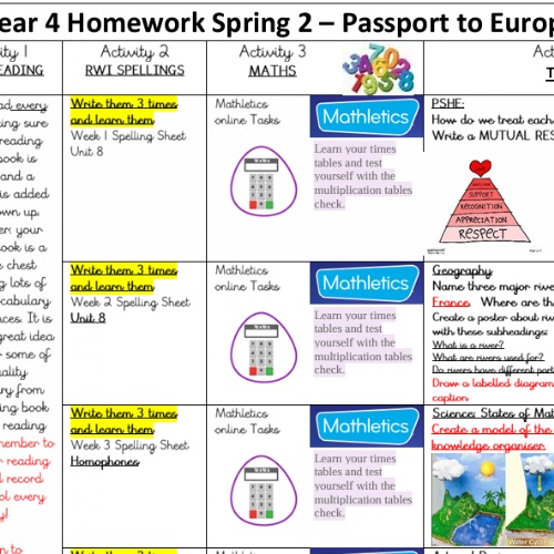 Year 4 Spring 2 Homework